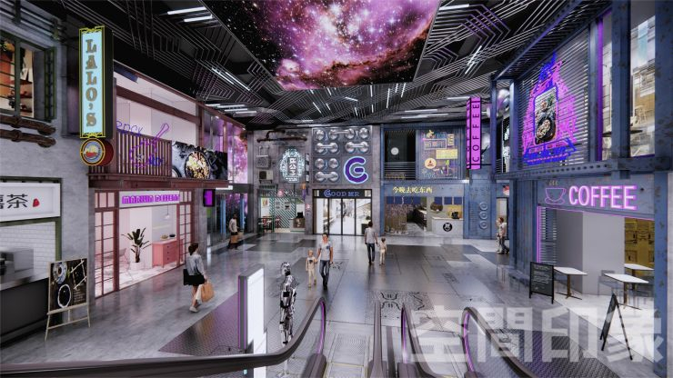 用“赛博朋克+蒸汽波”演绎神秘地下城,开启一场探索之旅。科技、未来、暗黑、机械、电子屏、霓虹灯、反乌托邦主义……我们揉入迷幻又复古的元素、暧昧又温暖的色彩,营造让人无法移开视线的神秘科幻美感的空间场景。开启一段80年代科幻浪潮与迷幻复古文化交织的旅程。