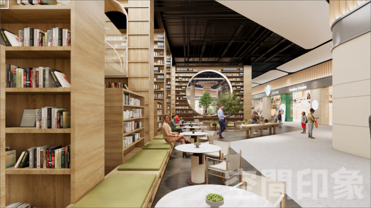 以温暖木质装饰为主旋律的书吧,层层堆叠各类杂志书籍,满足不同读者的个性化阅读需求,拱形结构搭建起的廊道,不仅增添了空间的层次感,还巧妙地引导了视线流动,让人在漫步其中时感受到一种连贯而有序的美。