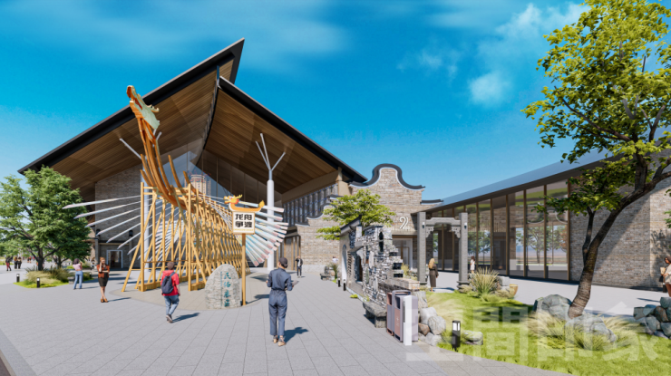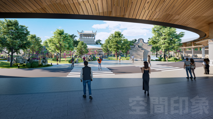 建筑设计上,突破传统服务区大体量封闭式的惯性设计思维,以岭南传统民居为基地,结合莞城三江六岸的流线形态,对建筑形态与景观布局进行当代转译,以全新的形式再现山环水绕的视觉意象,形成“山为屏、水为脉、文为韵”的半开放格局。