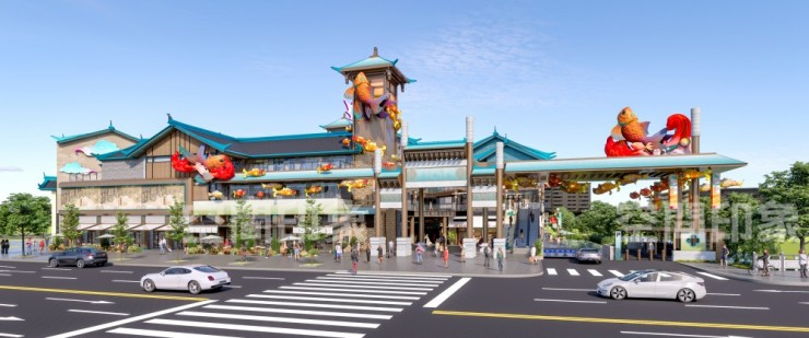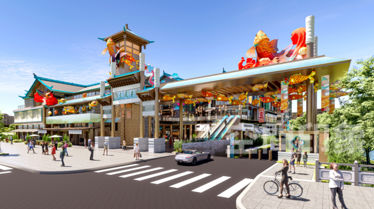 将其转化为建筑立面装饰、地面主题铺装、美陈装置等,如入口主体建筑是“鱼跃龙门”的具象表达,建筑立面是“独占鳌头”的造型解构等,让每处转角都是故事节点,每栋建筑都是文化容器。