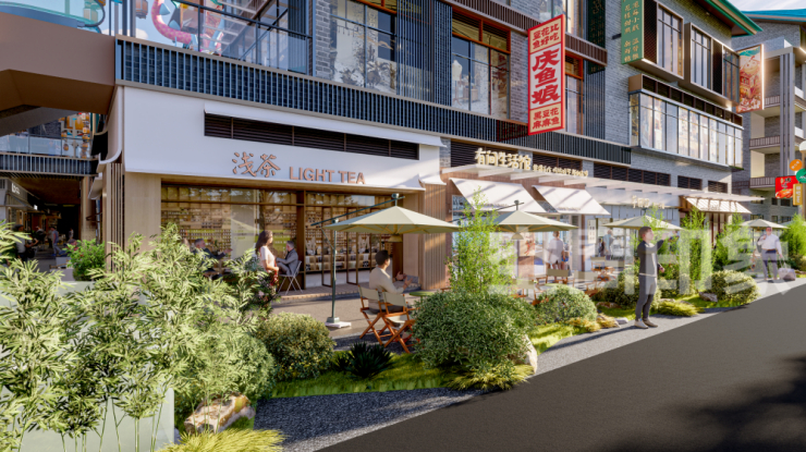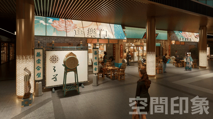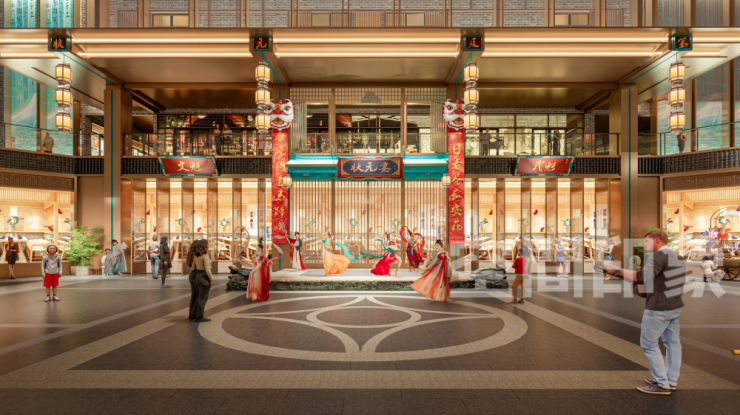 将这轴贡子画卷展开,划分为三大组团:丰乐坊、状元宴、茶墨居,对应贡子的一生。在场景营造上,我们坚持 “动线即场景、商铺即景点” 的原则,颠覆传统街区的物理局限,打造“移步异景”的视觉体验,释放“被遮挡的商业价值”。