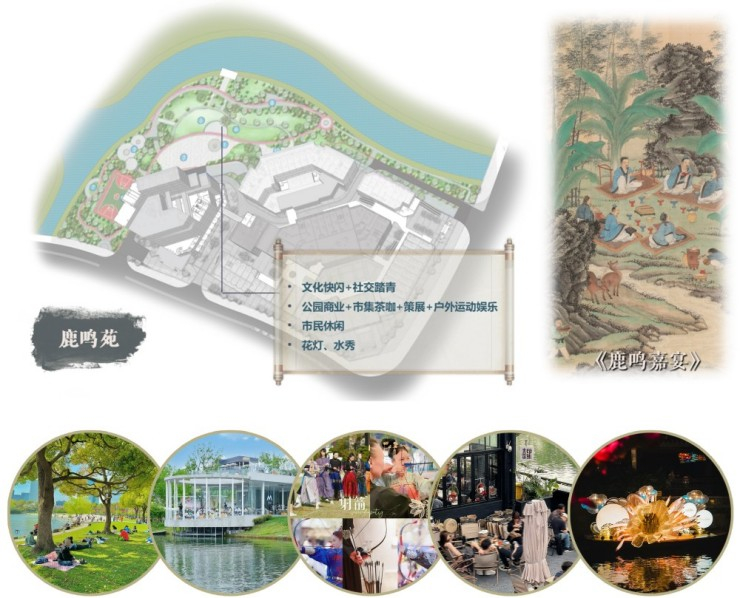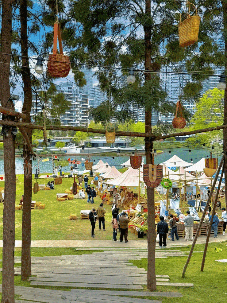 设计成品是内容运营的起点,我们将 “文化策展” 机制搬进文旅商业空间,让项目保持新鲜感、吸引力、生命力,让消费者从单向观众进化成事件参与者和内容创造者。利用绿地及河道沿岸的场景优势,通过社群营造、圈层文化带动的事件营销,如文化快闪、市集、户外策展、灯光水秀等,常换常新,维持项目新鲜感与生命力,实现消费者的身份认同,满足精神需求,为项目带来大量客流,产生自传播,培养自身的垂直客群,解决商业复游率低的痛点。