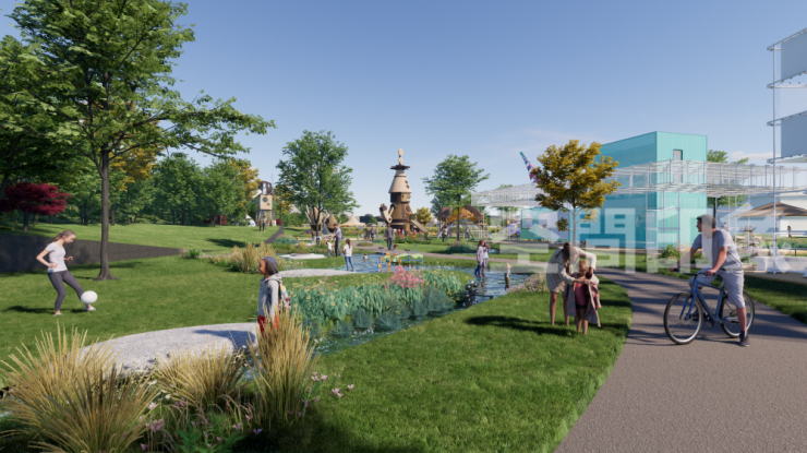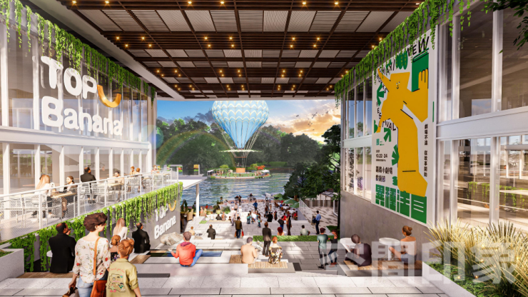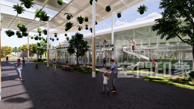 将步道、多经点和互动体验与自然景观结合,实现室内商业与室外公园的无缝衔接,引导消费者在行进中感受生态氛围,打破商业盒子的封闭性,让消费者从“逛商场”变成“在自然里享受生活”,创造室内外无界的流动体验,让商业空间成为都市人喘息放松的绿色客厅。