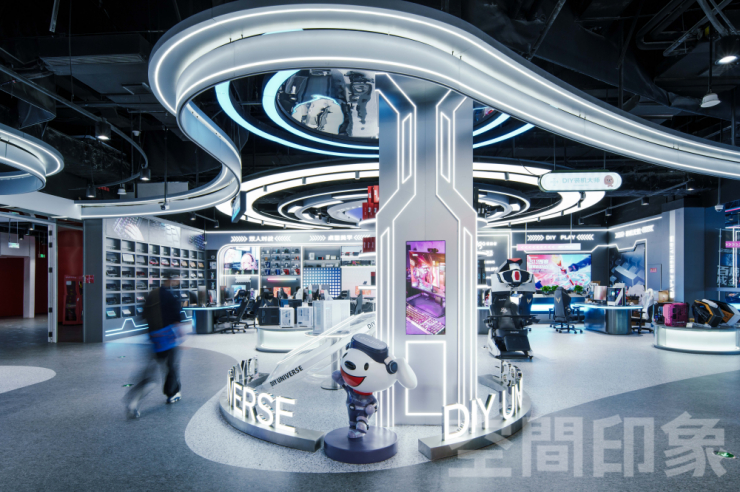 #宁波京东MALL设计深度融入宁波城市文化基因,重新解构JD品牌符号,完美破解盒子商业同质化与自我复制的行业难题。在空间中实现场景、体验、科技、产品与服务的深度耦合,依托新零售业态,打造极具未来科技感的沉浸式商业综合体,实现“低成本、优质量、高回报”的焕新奇迹。