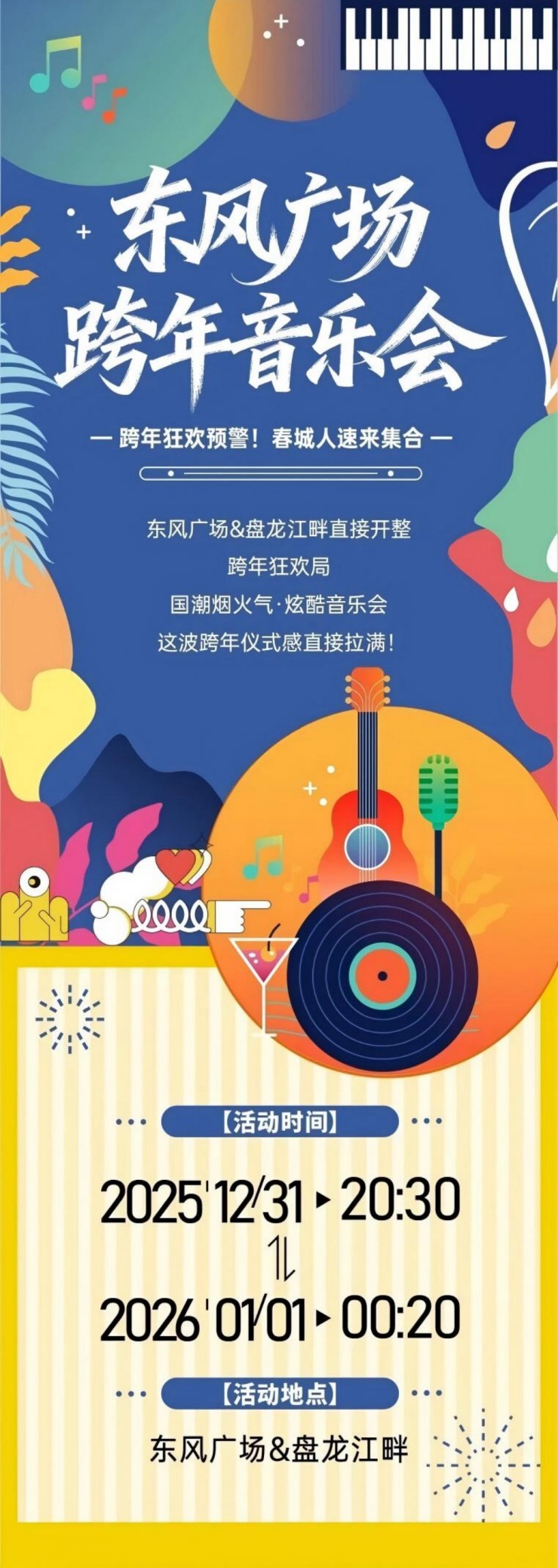 东风里位于昆明中芯,以跨年音乐会,明星阵容、新国潮乐坊、云南时尚秀、跨年歌舞秀、云南打歌队、跨年倒计时仪式等活动表演,重启东风广场的辉煌时代,迎接昆明人的2026,让【未出站台,先遇云南】从宣传语,变成了触手可及的体验。