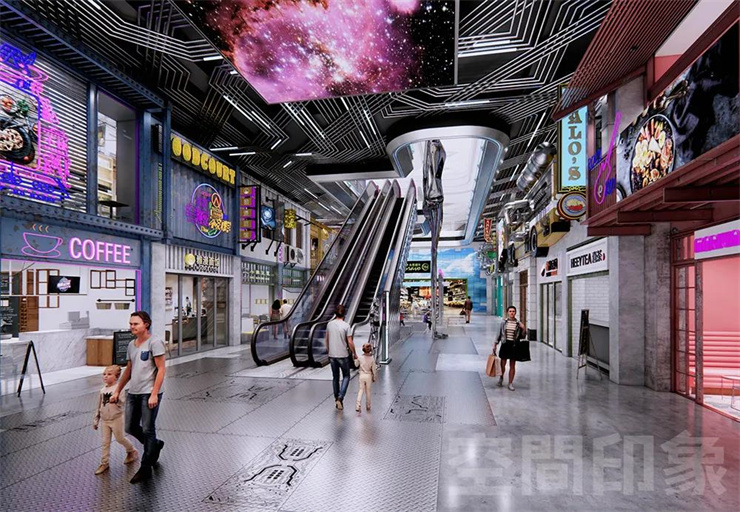 这是一个科幻与本土大胆碰撞的硬核混搭商业。我们将人类探索火星过程中的几个重大命题(始于银河、初见火星、探秘火星、火星异变、火星与地球的连接、火星物种对人类产生了好奇与研究)串连成整个空间主题的线索,规划出项目的品牌版图——银河谷、沙沙世界、玛尔斯堡、火星进化论、星际空间站、人类研究所(好吃街)。