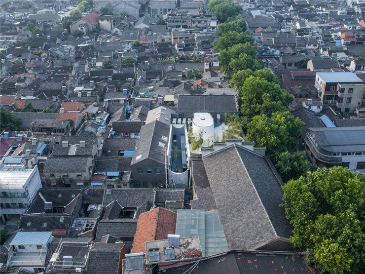 夹在书店盒子和民宿盒子之间的空盒子是扬州慢项目的中心,它以"空"这个特征联系了书店、民宿和后院。