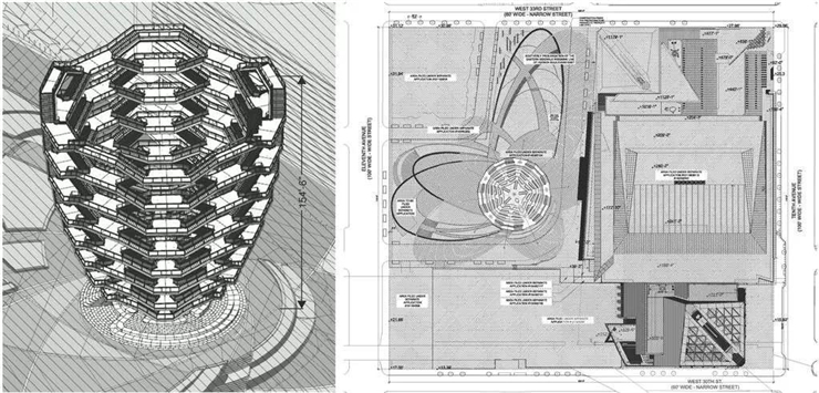 “在纽约这也一个充满了各色特征建筑群的城市,我们不想再设计一个纯粹吸引眼球的构筑物”Heatherwick解释到:“所以,我们希望设计一个每个人可以使用、触摸、参与其中的建筑物。我们参考了印度阶梯井的形式,一个将井下的人通过上千级台阶引向地面的方式……”